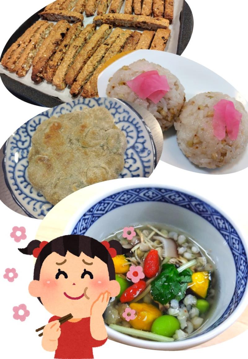 そば粉とそばの実の「ビスコッティ」、そばの実入り「おはぎ」、長野県川上村の郷土料理「梁越まんじゅう」、「そば雑炊(試食)」をつくりましょう☆