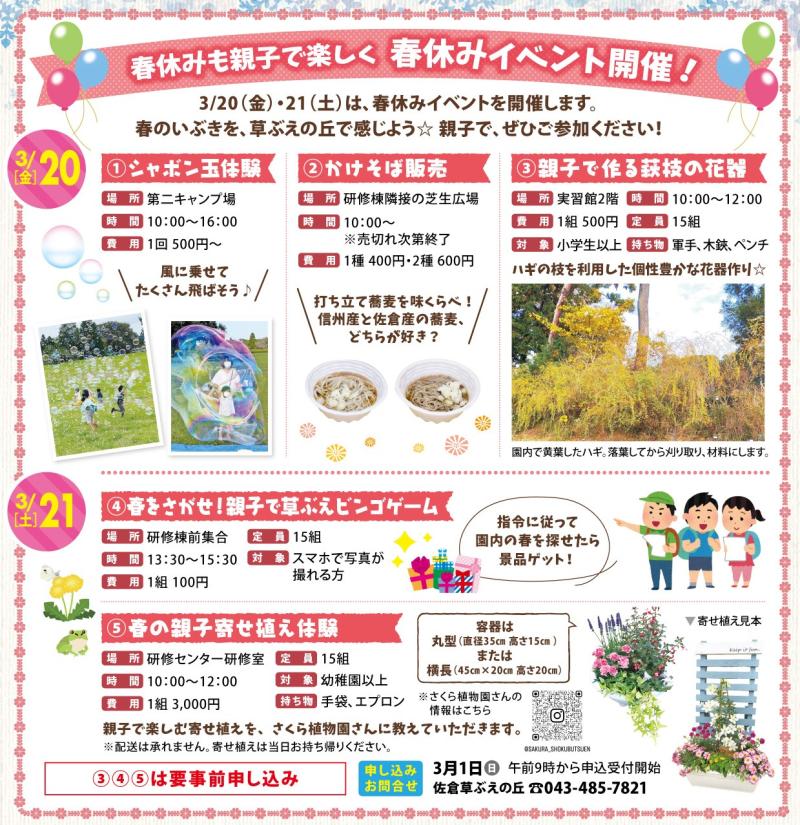 「春休みイベント」は3/1(日)の9時からお申込み受付開始です。
